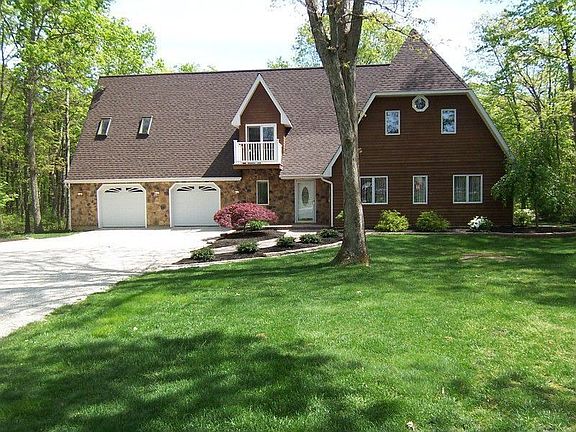 This unique custom contemporary Chalet style home allows you to retreat from it all, but still readily accessible to the conveniences you desire. Nestled on a quiet wooded 3+ acres this 4 bedroom, 3 full bath home has a spectacular open floor plan with neutral colors that will accommodate any life style. You can have the contemporary great room open style with an enormous eat-in kitchen with granite, or the traditional style with delineated rooms. The choice is yours the fle...