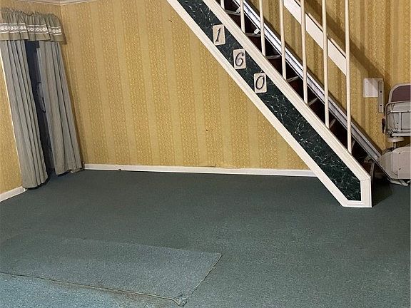 Could possibly be used as a 4 bedroom. Additional rooms upstairs are captive. Eat in kitchen. Detached garage. Freezer, Dryer and Chair lift stay - AS-IS condition.