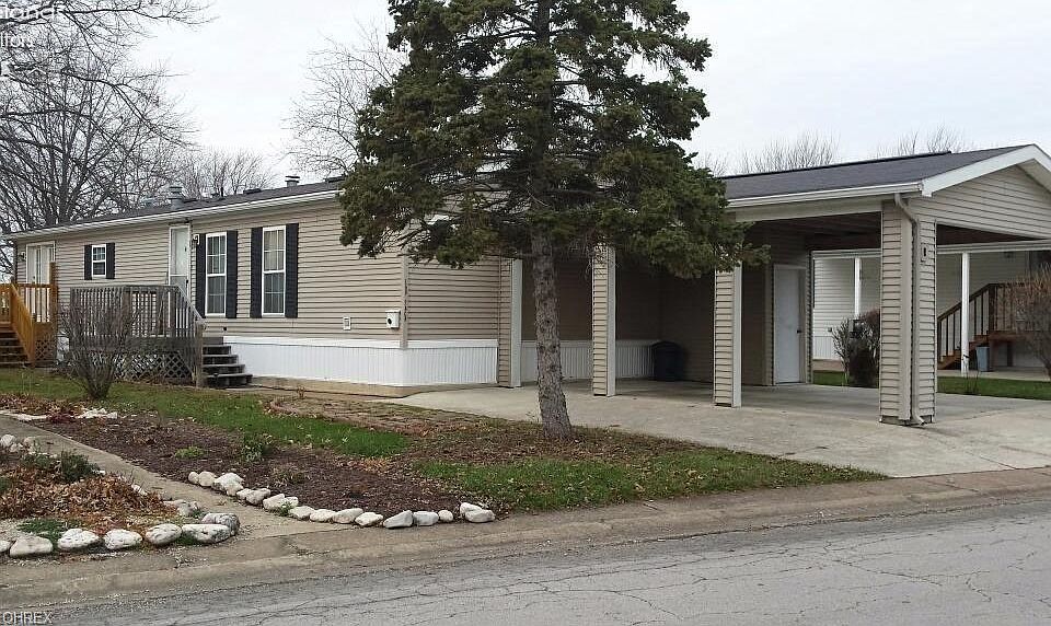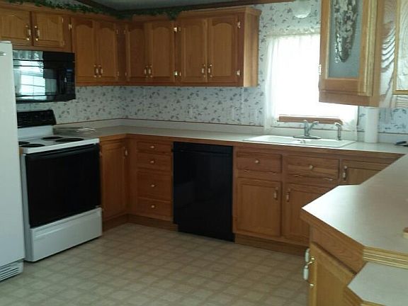 Lovely 3bed/2bath doublewide home in 55+ year round park. Wide open & spacious floor plan with fantastic newer wrap around deck(2014) with dual access that overlooks pond! Large kitchen with lots of cabinets, appliances & pass through island to dining room. Many windows facing the water for bright, sunny summer days or enjoy the cozy electric fireplace watching winter snowfalls! Perfect for a year round getaway! Large master suite with separate bath (new carpet & linoleum flooring), garden tub & walk in closet. Large roofed carport built on with storage room.