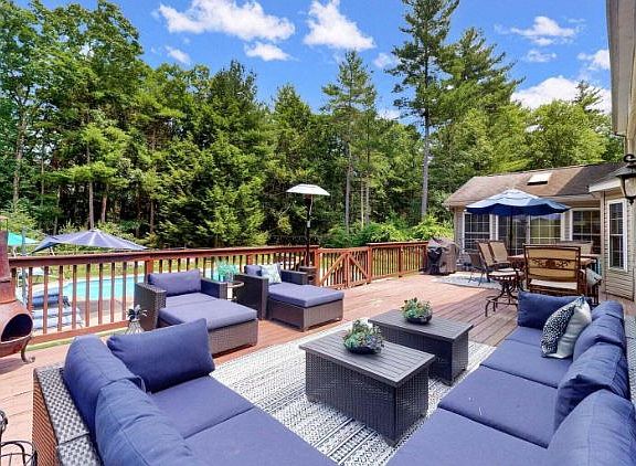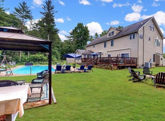 STATELY CUSTOM-BUILT COLONIAL ON FINISHED BASEMENT W 3RD FLOOR IN-LAW SUITE, 2 CAR GARAGE, INGROUND POOL, 48x38 POLE BARN and STORAGE SHED, PRIVATELY SET ON 2.93 ACRE LOT THAT BACKS TO SAWKILL CREEK. This magnificent 5 BR 3.5 Bath home conveniently located just minutes from the historical town of Milford, PA, 1-84, Bridges to NY and NJ, multiple waterfall, hiking trails and all kinds of great restaurants and shopping and entertainment, this incredible fully upgraded Pocono Paradise home boasts propane hw bb heat, cntrl AC, cathedral ceilings and a beautiful cherry hw flooring throughout; a large top-of-the-line kitchen w s.s appl and granite cntps, a large back deck, home generator and tons of living space w its LVR, FR, Den and finished basement w pool table and bar
