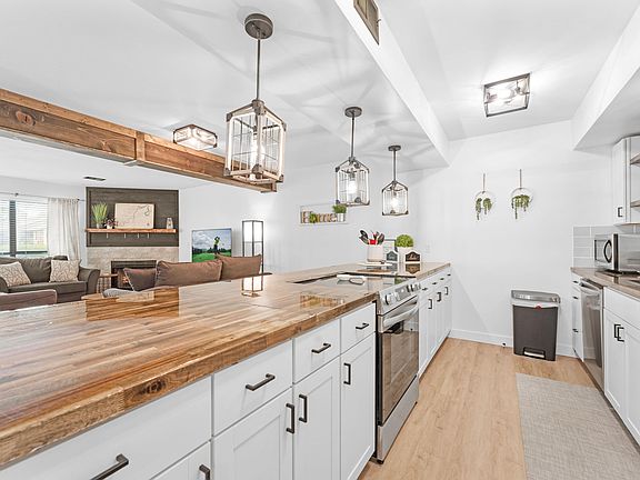 3-bedroom, 2-bath, 2-story walk-in entry, walk-out covered patio with luxury upgrades. The magazine-worthy kitchen features custom epoxied butcher-block countertops that extend for extra seating, matching stainless appliances, upgraded light fixtures, and a subway tile backsplash. The spacious living room has a custom wood beam complemented by a wood-burning fireplace perfect for your guests to unwind. The large master bedroom fits a king-size bed comfortably, plus a large ensuite bathroom with a tiled walk-in shower, upgraded fixtures, and heated floors! Two additional spacious bedrooms await upstairs, offering direct access to the private deck. You will also find a large shared bath and a huge laundry room with a full washer and dryer and plenty of storage. There are no restrictions on self-management here in the highly sought-after gated community of Pointe Royale Golf Village; the abundance of onsite amenities available for guests is simply unmatched in the Branson short-term rental market. These amenities include a full clubhouse with indoor and outdoor pools, an exercise room, basketball, tennis, and pickleball courts, plus much more! Enjoy being only minutes away from all that captivating Branson, Missouri, has to offer! Live shows, amusement parks, attractions, world-class golf courses, shopping, restaurants, beautiful Table Rock Lake, and so much more! Schedule your personal showing today!