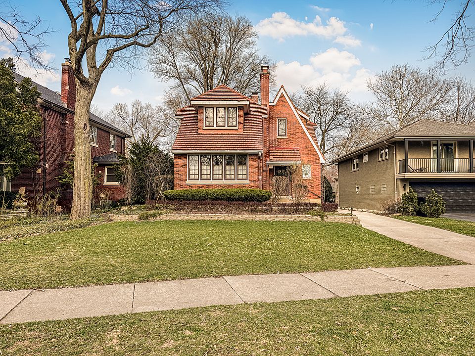 Welcome to this exceptionally charming all brick 1924 French Tudor offered by the 3rd owner after 40 years. This home is a perfect blend of original characteristics, such as: casement windows, cypress wood flooring, plaster walls, incredible woodwork, stained glass windows, french doors, laundry chute & more, giving it a unique blend of historical & modern elegance. Upon arrival, the curb appeal will make you feel right at home! The red brick and clay tile roofing lasts almost forever with little maintenance. Upon entry, the 3 stained-glass windows become your focal point as they take your eyes up the inviting foyer/main staircase. The spacious living areas flow graciously from one room to the next & boast abundant natural light streaming through 11 large casement (double paned) windows from the front sunroom to the formal living room that inclds a wood-burning fireplace. The formal dining room has built-in hutches & display cases, and serves as the connection from your front sunroom/formal living room to your casual family room. Relax and unwind in the (1992) brick addition family room which is located next to the impeccably maintained kitchen & also provides access directly to your rear yard and wrap-around deck, through a set of double french doors. The well-appointed kitchen is the right amount of space to host using a larger breakfast bar/serving counter, however, quaint enough to naturally want to host guests throughout your lovely adjoined, formal living and dining rooms. The kitchen features sleek granite countertops, a double porcelain sink, custom paneled refrigerator, and ample cabinet space for all your culinary creations. Retreat to the tranquil primary bedroom, complete with generous dual walk-in closets. Although the primary doesn't have its own suite, the 2 full baths on the 2nd floor provide for a primary designated bath and second full (shared) bath. Three additional bedrooms, all upstairs, offer plenty of space & generous closets, ensuring everyone has their own private sanctuary. The newly finished, DRY, basement is complete with a fireplace, new PVL flooring planks, a separate office & powder room, as well as tons of additional storage. Step outside to discover your own oasis in the nice sized backyard, where lush greenery and mature trees provide the perfect backdrop for outdoor entertaining. The 2-car detached garage is less than 5 years old! Conveniently located just minutes away from top-rated schools, shopping, dining, and recreational amenities, this home offers the epitome of suburban living. With easy access to major highways and public transportation, commuting to the city is a breeze. Don't miss your chance to make this wonderful property your own. Schedule a showing today and experience the magic of suburban living at its finest!