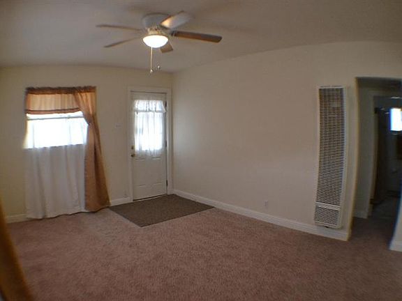This charming Victorian style home features a comfortable front porch for lounging on those cool evenings. Once inside you'll appreciate how roomy and clean it is starting with the living room that offers an overhead ceiling fan, programmable window A/C and new carpeting throughout house. The two bedrooms feature crown molding and window A/C units. The single bathroom is more than plenty offering a shower/tub combo, built in shelving and new flooring. Updated kitchen includes a new self cleaning range, refrigerator, microwave/grill combo and large dining area and for your convenience the laundry is indoors. More updating includes a new water heater, new flex tube water lines, updated electrical and adding a drop down ladder to the attic access, plus all window coverings. The large R-2 lot offers RV parking, a detached garage/work shop with evaporative cooler, alley access, close to schools and still plenty of room to build another home if desired.