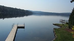 The sound of loons, the morning sun cascading across the water a summer breeze all yours with this stunning yr-round waterfront home. Each of three living levels enjoy panoramic views, beginning with the open concept kitchen/dining/living area w/fireplace overlooking the spacious deck & fabulous lakefront; the large master bedroom spans across the front of the 2nd level and enjoys its own private covered deck awake to lake views every day! The relaxed and comfortable lower level family room leads right out to the beach. A first floor bedroom & bath, plus laundry & 2-car garage allow for one-floor living. The well-landscaped side yard beckons guests to the main attraction, the lake front area of this cheery home. The condition is mint with nothing to do but move in and start having fun.