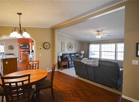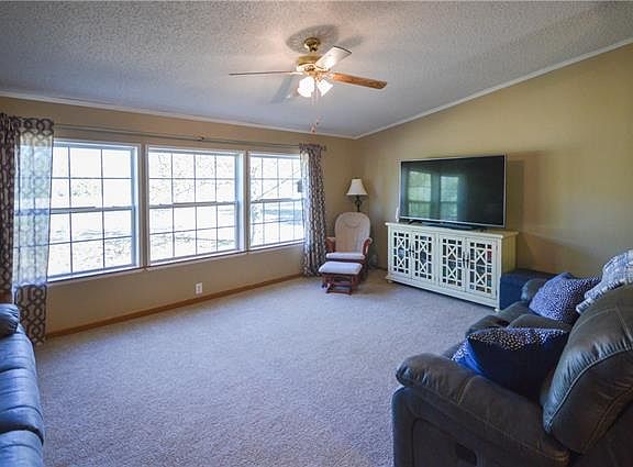 A private driveway leads you off the hard surface road to a beautiful well-maintained home built by Champion in 1998, sitting on 9.17 fabulous acres surrounded by woods. Such a private feeling you wouldn't know that you turned off highway 23 and 5 minutes to the front gate of Whiteman AFB when sitting on the covered porch or enjoying the deck which wraps around your 24 ft round above ground pool with covered sitting area. Wait until you see the wildlife that will walk around your property during the year. A private well is connected to the house and runs through a rented whole house water system. A detached 24x24 garage with concrete floor and electric sits next to a 12x14 storage shed so you don't have to store your lawnmower in the garage. Towards the back of the property is an 18x30 metal lean to that could be used to hold small animals or storage. Once you are ready to come in you will walk into a beautiful home which is comfortably controlled by a 5-ton electric heat pump and central air that is only 2 years old. Carpet and smart core vinyl flooring throughout the house. Roof was replaced in 2015. Kitchen has a gas stove and large island with plenty of counter space. Island can also serve as an eating area with chairs on one side. The kitchen also has an area for a coffee bar, so your coffee maker doesn’t have to be on the counter. You will be able to tell this home was very well maintained and ready for the next family. Septic tank runs to a lagoon and septic tank was pumped in September. Gas is supplied by rented propane tank.