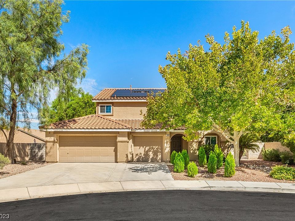 Stunning two-story home, newly remodeled, three car garage at the end of a peaceful cul-de-sac. Boasting four bedrooms, solar paid off, all new windows and A/C approximately 2 years old. The heart of the home is undoubtedly the bright & spacious kitchen with gleaming granite countertops, white cabinetry, & stainless-steel appliances. Natural light floods in through many windows, making this the perfect spot to unwind. The primary bedroom is a true retreat with spacious outdoor decks. It features a walk-in closet and an en-suite bathroom that rivals a spa. Imagine unwinding in the soaking tub or enjoying a refreshing shower. Dual sinks & modern fixtures complete this oasis. Downstairs is a cozy fireplace with a dedicated laundry room. Low-maintenance backyard with mature trees, pavers and turf for a private enjoyable environment. With a low homeowner’s association fee, you'll enjoy the benefits of community amenities without breaking the bank.
