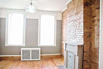 Full wall of exposed brick. Gorgeous vintage details like original french doors and decorative fireplace from 1910, the year the building was built. Transportation G - Nassau Av, L - Bedford Ave Cal//Text Kevin P 219-682-6565 Heat and Hot water included