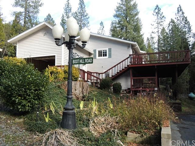Turn-key living in the Tall Pines in this well-maintained, spacious custom 3 bed/2 bath home with lots of outdoor living space. Large kitchen with ceramic tile floors and plenty of counter space opens onto the living room which leads out to the expansive upstairs deck with lots of room for entertaining and enjoying the views of the surrounding forest. The master bedroom opens through French doors onto its own private deck. Located at the end of a privately maintained paved road, this home offers privacy without sacrificing easy access. The lower level of the home can be used for a large bedroom or family room that leads out to a lower deck. Plenty of room to store your toys with a large 3 car detached garage/shop and a 1 car attached garage. Fully installed backup generator for when the power goes out. Concrete RV parking in the back of the home. Peaceful, mountain living... just 30 minutes from town! - Foothills, Mountainous, Rural setting - Trees/Woods views - Laundry area with additional half bath - Living room propane stove - Central heat & air, whole house fan, ceiling fans; Double Pane Windows - District water - Extensive decks Listing Agent: TJ Jensen, 530-370-8424, Sunset Vista Realty / SunsetVistaRealty.com / CalBRE #01952290