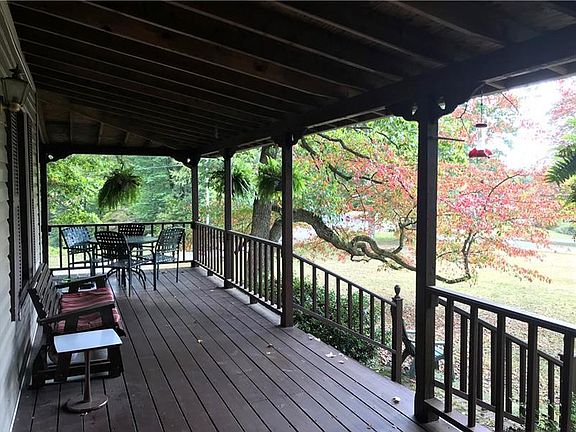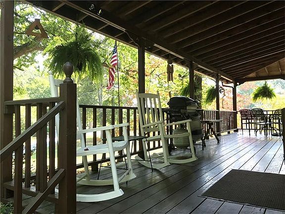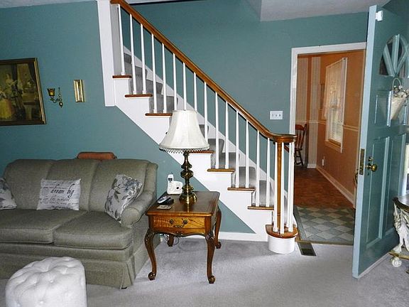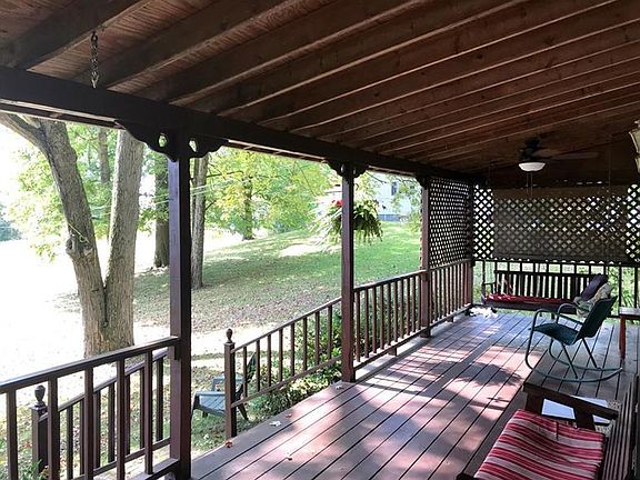 Enjoy stylish country comforts in this exceptionally maintained Colonial precisely perched on a picturesque 1 acre corner lot. Encircled in maintenance-free vinyl siding and complimented by an enviable wrap around porch, this home's outdoor entertaining and relaxation space is second to none. A decorative solid wood front door extends a cordial welcome into a timeless farmhouse design offering wide-eyed views of an enduring staircase. Entertainment-friendly living room flaunts built-in shelving & is anchored by a fireplace equipped with a wood-stove insert w/ ceramic inlay and hearth. A sun-drenched dining room is underscored in earth-toned flooring and is perimetered in bright white chair rail. Unparalleled efficiency awaits in the fully-equipped galley-style kitchen showcasing 2 walls of pickled oak cabinetry, contrasting counters and walk-in pantry. Partially finished basement hosts a family room w/ 2nd fireplace, spacious laundry room & convenient half bath w/ shower.