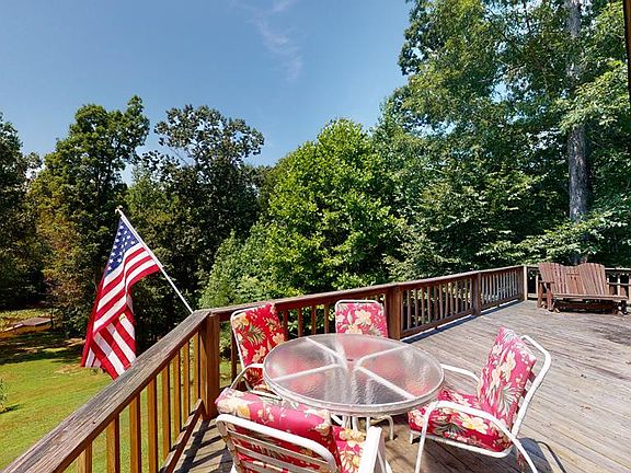 Beautiful waterfront home in the Birdsong area sitting on 3.22 +/- acres. This home features custom wood floors with five different types of wood, four bedrooms, three and a half baths with a basement, two car attached garage with a 40' x 30' detached wired shop, a gorgeous stamped / stained concrete circle drive and a dock for your boat or personal watercraft. Master is on the main with two bedrooms, full bath and loft upstairs. Downstairs has plenty space with a bedroom, great room, full bath and two storage rooms. Take your pick of sitting on the front porch swing, deck or screened porch and enjoy the lake life. All appliances stay including the washer and dryer.