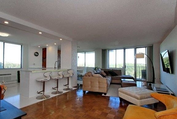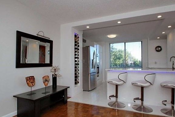CUSTOM DEVONSHIRE CONDOMINIUM - THE EPITOME OF LUXURY! SPACIOUS 2 BED, 2 BATH UNIT WITH OPEN FLOOR PLAN, ONE OF A KIND DETAILS, TERRACE WITH SWEEPING NYC VIEWS. BEAUTIFULLY MAINTAINED HARDWOOD THROUGHOUT APPROX 1464 SQ FT OF LIVING SPACE. ENTRY FOYER WITH CUSTOM STONE FEATURE WALL, LIVING ROOM HAS SLIDERS TO TREX BALCONY, FORMAL DINING AREA WITH MURAL WALL. GOURMET MEIK WITH BREAKFAST BAR, CUSTOM QUARTZ FLOORS AND COUNTERS, HIGH END STAINLESS STEEL APPLIANCES INCLUDING DOUBLE OVENS AND LG DOOR-IN-DOOR REFRIGERATOR. SPACIOUS MASTER WITH EN-SUITE, SECOND BEDROOM ALSO PERFECT FOR DEN/OFFICE. BOTH BATHROOMS GUT RENOVATED WITH PORCELANOSA TILE IMPORTED FROM SPAIN. 2 INDOOR PKG SPACES $55 EACH