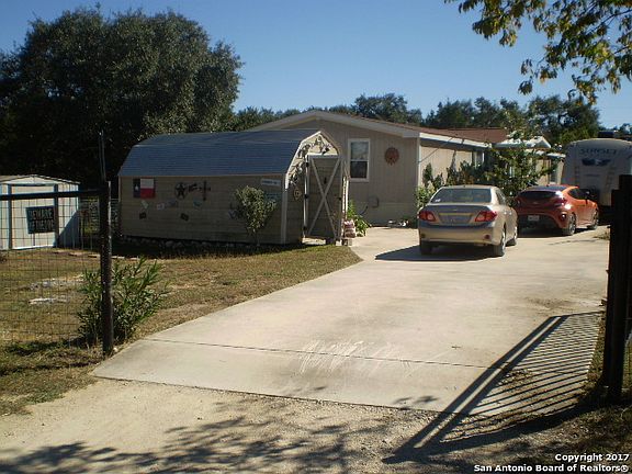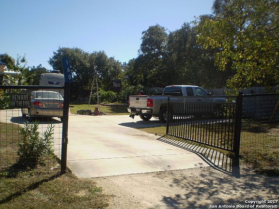 This is a CHARMING property, well maintained home on .72 acres. Lots of EXTRAS Very private, completely fenced, mature trees and landscaping, greenhouse, kids playground, large concrete pad w/drive and RV pking. Shop and storage sheds. Washer, dryer and refrigerator included in sale. Sit on your upper deck and enjoy the Texas Hill Country. Owners park with river access. Come see today.