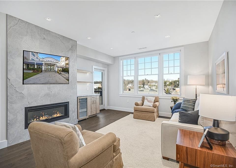 High floor 2Bd/2Bth with lovely open town views! Experience sophisticated single-level living at the VUE, an exciting premier luxury condominium community in the heart of New Canaan. The condo features fine interior finishes & architectural details with a light filled open floor plan, custom kitchen, private balcony, fireplace, high ceilings and a master bedroom suite with spa-like bath. The 2nd bedroom features a lovely custom built Murphy bed with stylish shelving & drawers. Unparalleled building amenities include a variety of concierge services, 2 state of the art fitness centers, natural playscape & Zen garden, underground parking with car detailing & pet washing room. Entertain guests in the Club Room and on the two rooftop terraces with outdoor kitchen, firepits & stunning sunset views. Enjoy this luxurious lifestyle just steps from the village!