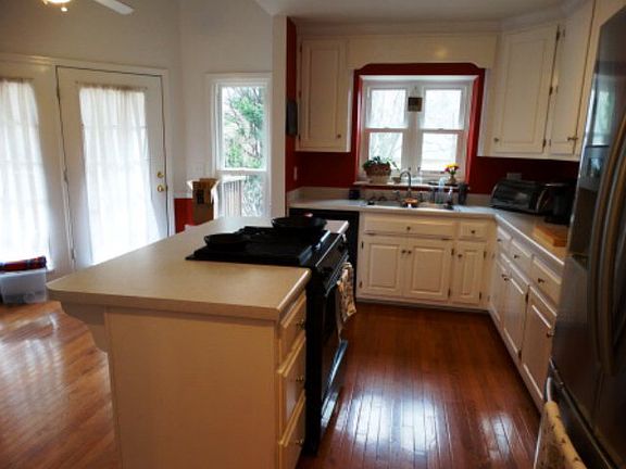 Once you enter the well lit foyer the first thing you notice are the gleaming hardwood floors that flow into the living room with soaring ceiling and a cozy fire place. The dining room that is connected to the living room boast trey ceiling and crown molding. The kitchen has a Jenn-Air Gas-Electric Grill range with Convection Oven, 42 inch cabinets all the way to the ceiling, pantry and breakfast nook that looks out over the very private back deck. The master bedroom is a great size and has a bath room with double vanity, jacuzzi tube and separate shower with dual shower heads (standard head and rain fall shower head). Upstairs you will find two more bedrooms and a storage/office room that is parcel finished with bead board walls. The yard has two separate fenced in sections, good for dogs and/or children, and also plenty of space not fenced in.