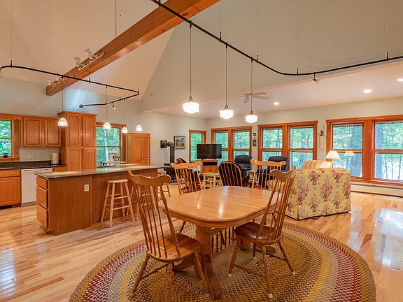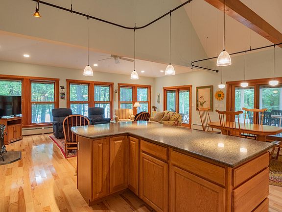 Stunning Long Pond Year-round home in a beautiful private setting. Ready to enjoy now and is fully equipped with furniture, kayaks, canoe, plus many other items to enjoy! Property features large entry that leads to a bright and sunny kitchen. Quartz Silestone countertops with an oversized island makes entertaining and meal prep a pleasure. The living room has many large windows to view the lake and leads out nicely to the year round porch also with all windows. Cozy Vermont Casting Stove keeps living room and dining space and other areas cozy on chilly days. Primary bedroom on the first floor has an ensuite bathroom and double closets . Separate laundry room keeps all necessities organized. Additional full bath on main floor. Upstairs space for an office or sewing/craft area that leads to another bedroom space and finished TV/ bonus room. Walk out basement is partially finished and would make a great rec room. Mechanical room has many clever storage options to keep everything neat and organized. On demand full house generator for piece of mind if power goes out. Lovely lakefront with dock system, float and mooring ball and a wooden seating area, boat launch and kayak ramp. Close to the Belgrade Lakes Village area, Augusta, Waterville and Farmington. Security system with full house generator.