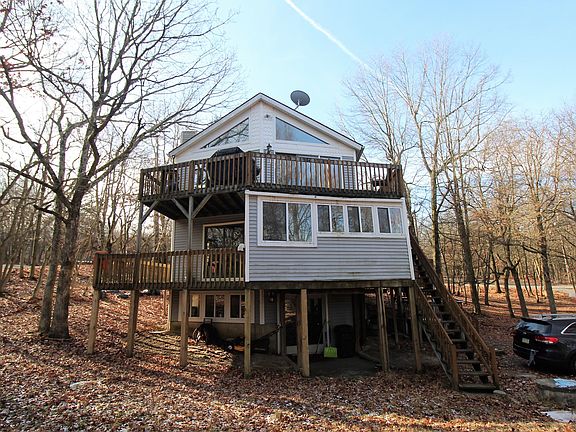 Massive 6 Bedroom, 4 Bathroom Raised Ranch situated on a corner lot with two driveways! Features include 2 Master Bedrooms, a 3 stories of living, Family Room, Game room, open Livingroom, Dining Room and Kitchen with both propane and wood fireplaces. Screened porch with a hot tub all located in desirable Towamensing Trails! An incredible investment opportunity!