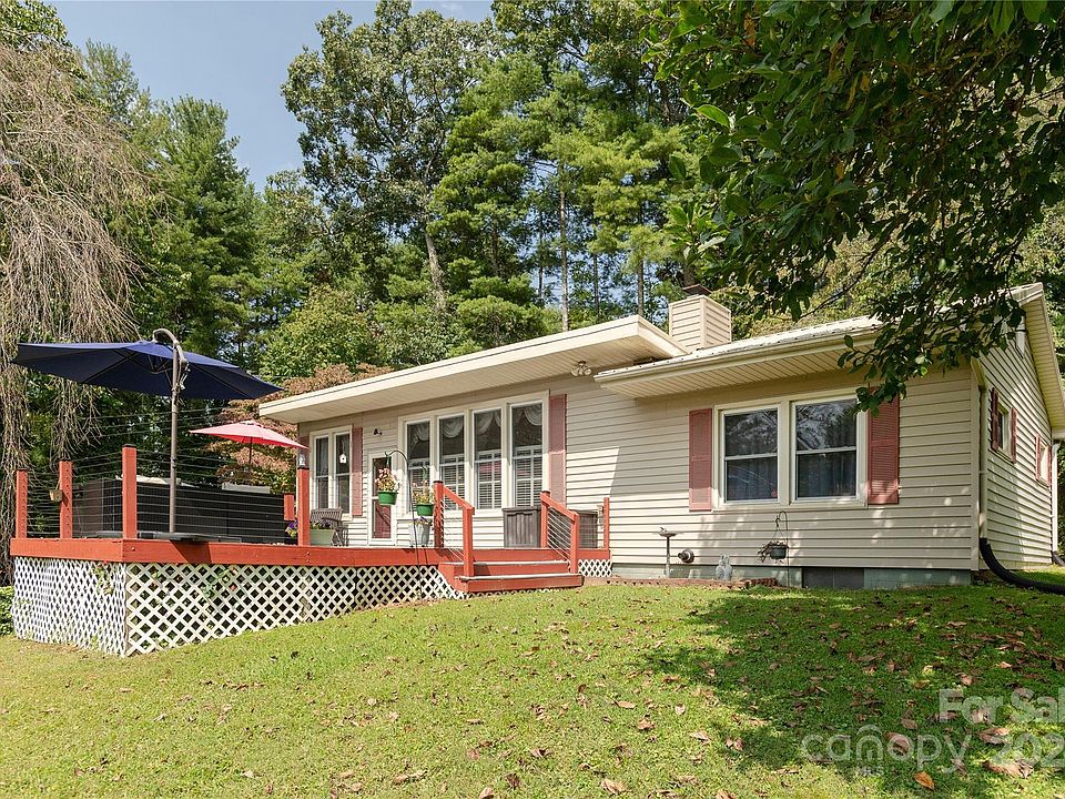 This home features loads of natural light, updated kitchen and bathrooms, an expansive 570+ sqft deck, and a serene setting overlooking the large ~2 acre yard...all very convenient to Hendersonville in desirable area! Other features include Rinnai on-demand water heater, full unfinished basement for additional space and storage, new metal roof in 2023, fireplace with Buck insert/gas logs, and all new wooden interior doors. Kitchen remodeled with granite, tile backsplash, and SS appliances, Bathroom completely remodeled with tile shower, walls and flooring. Seller says original oak hardwood flooring under carpet tiles in both bedrooms. Flooring in living room and hall are white ash, ceramic tile in kitchen and bathrooms. Come watch the deer play in your front yard! This home includes TWO separate parcels, each are approx 1 acre. Sellers obtained previous zoning, septic, and well permits to build another home but never did...it's potentially possible, please ask for more details!