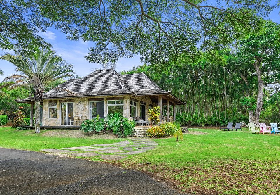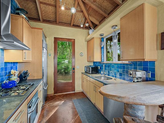 Set on a gated 2-acre estate, the cottage offers 2 bedrooms and 1 full bath with a very unique outdoor shower and covered lanai. The home features large concrete tiled floors throughout with no carpet whatsoever, and most walls are finished in Venetian plaster.