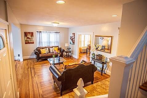 Pristine "Pottery Barn"esque three bedroom colonial with an open flow to the floor plan. With gleaming hardwoods throughout, and an upgraded eat in kitchen-this home is so very inviting. Three spacious second floor bedrooms, a finished basement with three separate rooms, and a beautiful enclosed backyard porch for entertaining. A unique beauty for certain!!