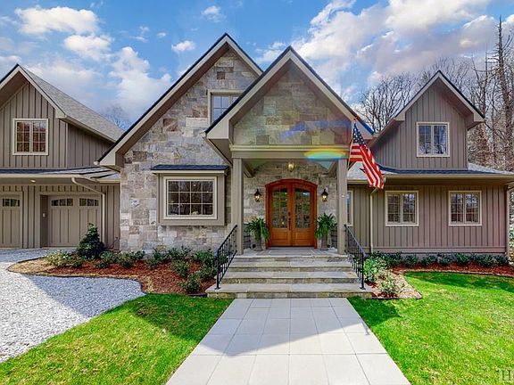 Every detail was meticulously considered in the creation of this custom-made residence situated on a cul de sac within Highlands Country Club. Exquisite landscaping and a gravel driveway guide you to a stone entry adorned with wrought iron railings. As you step inside, a grand foyer extends a warm greeting to all who enter, setting the stage for gracious hospitality. At the far reaches of this expansive space, a 1,600 bottle wine cellar with a cork floor and a stylish wet bar beckon, their presence ensuring that hosting gatherings is a delightful affair. The kitchen showcases top-tier Bosch, Sub Zero, and Kitchen Aid appliances, complemented by stunning cabinetry featuring Taj Mahal granite countertops. An expansive island provides ample seating, fostering lively conversations. An adjacent well-appointed pantry features a built-in desk and an additional refrigerator/freezer. Flowing from the dining and living areas is a bright, spacious sunroom, that leads to a captivating stone patio complete with an outdoor kitchen. Cathedral ceilings grace the living room, which is enhanced by a striking fireplace. On the main floor, three generous en suite bedrooms offer comfort and privacy, while the upper level has the potential for expansion. The master suite grants access to the stone terrace that overlooks the lush backyard. Its luxurious bath features a double vanity, a convenient step-in steam shower, and "his and her" custom Carolina Closets. Completing the residence, an oversized garage includes a cart barn and workshop. The property's charm extends outdoors with two babbling creeks that feed a picturesque pond, embraced by expansive terraces. Fireplace Features: 2 or more