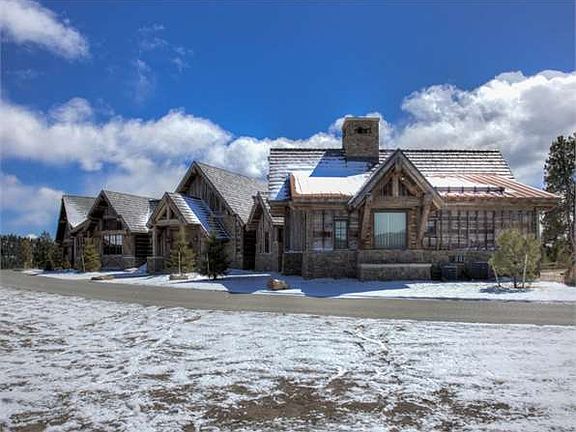 Vista Ridge Estate is a one of a kind legacy property in the desirable town of Evergreen, Colorado. Absolute privacy with amazing views, these 19.25 acres are bordered on two sides by national forest, with all the conveniences of nearby Denver. Impeccable architecture and craftsmanship utilizing reclaimed timbers and dimensional wood, hand cut moss rock imported from Montana, and hand-forged custom ironwork throughout. With numerous custom features and top of the line components, this modern home has it all done in an authentic mountain-rustic style. Improvements include a 6,455 sq. ft. main residence, 1,381 sq. ft. attached garage, 1,875 sq. ft. shop/RV garage and 1,000 sq. ft. gym/studio above.