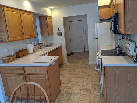 Wonderful 2 bdrm 2 Bath Patio Ranch with cathedral ceilings, open floor plan, spacious kitchen fully applianced, den and 3 season room off the den. Great room w/gas fireplace. Move in ready. This is not a 55+ community.
