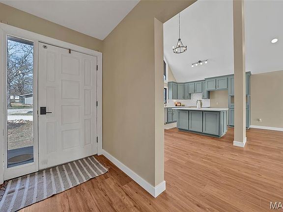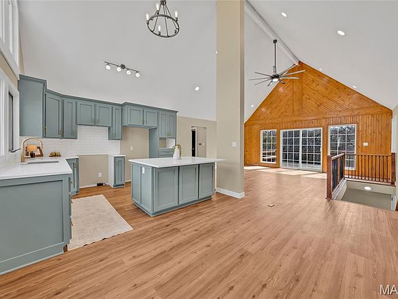 This stunning home offers an impressive blend of modern design and rustic charm, featuring soaring ceilings with exposed beams and an abundance of natural light streaming through expansive windows. The open floor plan is perfect for entertaining, centered around a brand-new designer kitchen with quartz countertops, a spacious island, and high-end finishes. The split bedroom layout ensures privacy, with a luxurious primary suite boasting a walk-in closet, a private balcony, and a spa-like bath complete with subway tile and a walk-in shower. Three additional bedrooms are conveniently located on the main level, along with a well-appointed laundry room. The finished basement provides an oversized family room with a cozy fireplace and an additional bath, offering the perfect retreat. Step outside onto the huge deck overlooking the private backyard, nestled on a large lot. A two-car garage completes this exceptional home, where every designer detail has been carefully curated for modern living. Seller offering a $3000 appliance allowance.