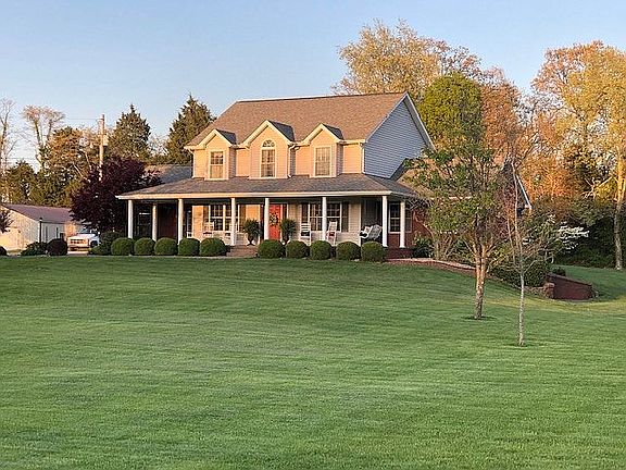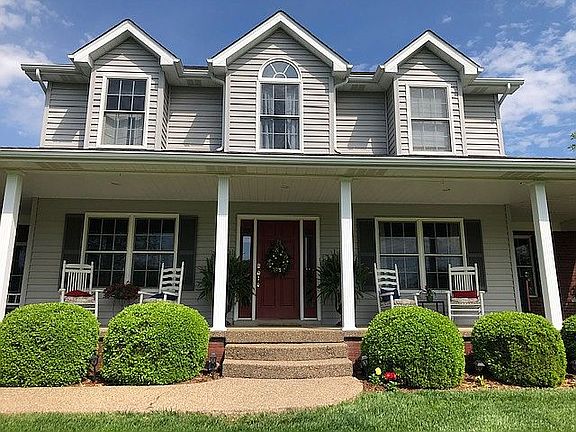 Check out this beautiful custom 4-5 bedroom mostly brick home sitting on 1.5 acres in one of the most charming neighborhoods near Brandenburg! Just a mile from the By-Pass, this classic home sits in a dead end cul-de-sac surrounded by beautiful lawn and mature landscaping. A tree lined woods in the back create a quiet and private home setting. All the beauties of quiet rural life with conveniences of town nearby. As you drive up the asphalt drive, the wrap-around covered porch trimmed in brick with smooth concrete floor and recessed lights give the home a warm welcoming feel. Guests enter the home into a front sitting room with red oak, site built hardwood floors, which carry through most of first level. The room features an Amish made built-in computer desk with shelving and file drawers. The dining room is adjacent and also opens into the living room, which features a vaulted ceiling and recently replaced carpet. One can enter living room through dining room or from kitchen area, creating an open flow to the house for entertaining and accessibility. The heart of the home is the very spacious kitchen, and you’ll notice the large center bar with pendant lights, surrounded by beautiful custom Amish-made cherry cabinets and late-model stainless steel GE appliances. Appliances have recently been upgraded to include dual ice maker refrigerator, super quiet dishwasher, microwave, striking solid surface convection oven, and garbage disposal.The kitchen also has Amish-made pantry with attached desk, and a separate pantry closet. A half bath is located accessible to all rooms on this level. The laundry room with multiple storage cabinets and laundry sink is also conveniently located on the main level, just off the kitchen.The breakfast area features lots of windows and door that leads to the covered back deck’s outdoor living space, which overlooks a large backyard edged at property line with woods. Great place to start the day and enjoy nature at sunrise.The deck leads down to a large custom patio with herringbone laid pavers. The patio is wired for a hot tub and is used for fire pit and outdoor dining. There you can also find a grilling station and built in bench to add additional seating at the patio level. This area is tastefully landscaped to create beauty and privacy without extraordinary maintenance demands. The back deck and patio provide the perfect place for outdoor entertaining, while also creating a quiet retreat for private relaxing. The hardwood staircase leads to an all-wood landing with 4 bedrooms and 2 full baths on second level. All bedrooms have recently been redone with a high-grade carpet. The large master bedroom has two closets, a his and her, which leads directly to the master bath. The master bath has custom Amish-made cherry vanity, and garden tub with ceramic tile. The water closet houses the shower and toilet. The three other bedrooms are spacious and share a full bath with custom Amish-made cherry double vanity. Both baths have ceramic tile floors. Two bedrooms feature window seats for additional storage and seating. The basement is 70% finished and features an Amish-made wet bar, with island and pendant lights. The basement has been recently remodeled with new waterproof luxury vinyl flooring by Shaw. As you walk down into the basement you are greeted with an awesome 110” Projection screen. Great place to watch movies or entertain for sporting events.The walk-out section of basement can be a rec room or another bedroom/office. The rest of basement is unfinished with small storage/office/craft room and mechanical closet. The home’s HVAC system was replaced and upgraded in 2019. The new HVAC is a highly efficient heat pump with 15 seer variable speed air handler. The electric water heater is also less than 5 yrs old and upsized to an 80 gallon unit. This home and location can’t be beat! Contact John Beavin at 270-668-2734 for additional details or to schedule a showing.