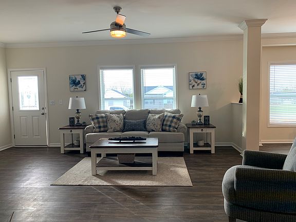 Beautiful 3 bedroom 2 bathroom home with gorgeous sun room, Huge kitchen with center island. Dining room with ship-lap wall. Large Master Bedroom, HUGE Walk In Master Closet and master bathroom with all tile shower, and large linen closet. Over sized 2 car garage with tons of outlets and concrete pad in back for RV. Large backyard and covered front porch. Don't miss your chance to live in a great community with no HOA.
