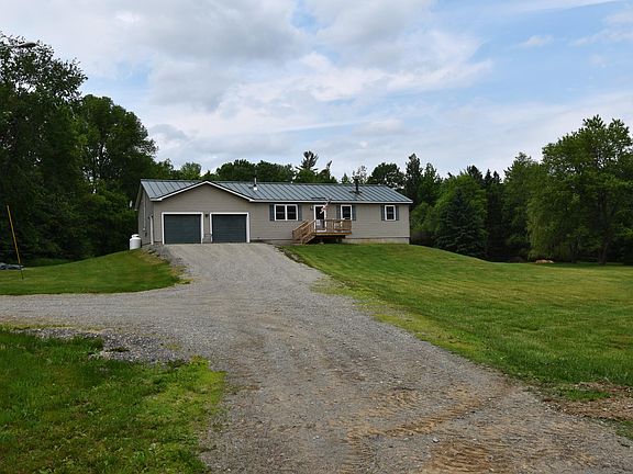 Looking for one floor living on a beautiful country lot? This charming Ranch style home offers a spacious living area w/ kitchen, living area, 2 bedrooms, with a possible 3rd and 1 bath. There's been updates including a new and efficient HWBB propane heating system. There's also a Regency wood stove in the living room for cozy evenings. The walkout basement offers plenty of opportunities for expansion or a great workshop. The attached oversized two-bay garage has the opportunity to be heated if you wish. And, there's also a new generator transfer switch for your generator hookup. Outside you'll find a deck on the front and back to sit, relax and watch the wildlife! The 4.10 acres is beautifully groomed and ready for your bountiful garden, with a beautiful 8'x 16' garden shed. There's also a shed for wood storage or maybe some animals. This property has been surveyed and is surrounded completely by trees for privacy. If quiet country living is what you're looking for this is the one you've been waiting for!!!