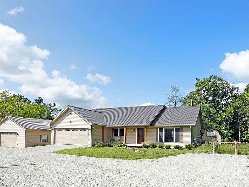 Peace and quiet, wildlife, retreat, over looking the Kentucky River, just a few words to describe this once in a lifetime property. The truly open floor plan is well thought out with 3 bedrooms and 2 full baths on the main level along with the laundry room. The soap stone wood burning stove offers a little something extra on those cool nights. The basement has 1 inch foam on the walls that is painted, and provides great flexible space ready for your personal vision. The patio and deck overlook the woods and provide views of the bluebirds and butterflies. This home is extremely energy efficient and is 1 mile from a boat launch onto the KY River. The 4 car detached garage features 6 in insulated walls and drywall, is pre-wired for a mini split system, a 1/2 bath and gives endless possibilities to this already amazing property. We can't wait to show it to you, call today....Lets Talk!