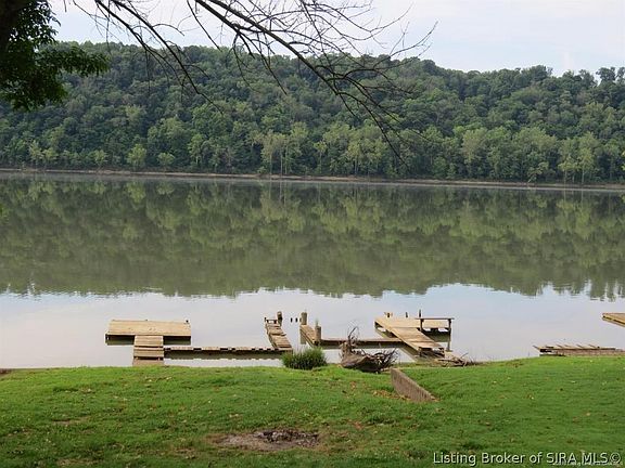 RIVER FRONT RETREAT! Front row views of the river from inside your home or the porch or large deck with Fire Pit, Swing, and Gas Grill. Peaceful and serene...all you hear are the birds chirping and the wind blowing through the trees. Keep your boat docked at the water's edge on your own boat slip or park it by the shed in colder months. Roomy Carport includes a garage door at one end. Open floor plan and 2 bedrooms upstairs. Flip on the fireplace in cooler months. Extra kitchen on first floor makes perfect spot for entertaining. Sweet Summer Get-A-Way just 30 minutes from downtown Louisville. Walk over and eat out on the picnic tables at the newly opened SummerTime restaurant. Call for your showing today!