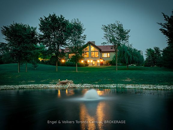 Phenomenal custom-built home sits on large lot spanning over 2 acres & is located in a desirable neighbourhood on top of the Escarpment close to the Blue Mountains. A grand foyer welcomes, leading to a spacious living room boasting a 20-foot vaulted ceiling, expansive windows, panoramic views of the Niagara Escarpment & Georgian Bay & cozy fireplace & wet-bar. The modern kitchen is a chef's delight, featuring s/s appliances & an inviting island w/ seating, ideal for casual meals or gathering with friends and family. The adjacent dining room offers sliding doors that lead to a covered porch, allowing for seamless indoor-outdoor living. The primary bedroom is generously sized, boasting a 5pc ensuite bath complete with soaker tub and a walk-in shower. This house of versatile space, offers 3 additional bedrooms, each with its own ensuite bath. There is a second full kitchen, living room, and dining area, creating the perfect opportunity for an in-law suite or a separate apartment.Professionally landscaped, saltwater pool & a large pergola. The pond adds aesthetic appeal but also irrigates entire property. Circular drive w/ ample parking, attached double garage. Just minutes from downtown Meaford or Thornbury.
