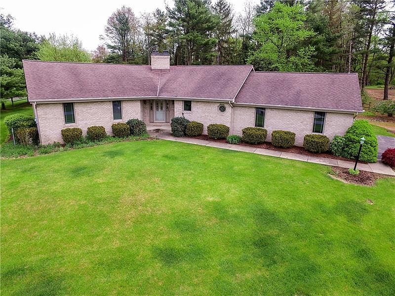 Custom Built Ranch in Southern Butler County. Stunning Brick Home Situated on over 2.5 Acres. Vaulted Ceilings with Exposed Brick Stand Alone Fireplace in Living Room. Sunroom opens to Covered Concrete Patio. First Floor Laundry, Guest Half Bath, and Guest Full Bath. Master Suite with Private Bath. Finished Lower Level Features Second Brick Fireplace and another FULL Bath. Oversized TWO car Attached Garage PLUS 17*19 COVERED Picnic Pavilion with 8/*19 Enclosed Workshop with electricity and water service AND Detached Barn/One Car Garage at Southern End of the Property. Perfectly positioned near Route 8, 228, and the turnpike.