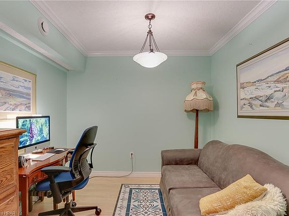 Live that low-maintenance, well-located lifestyle in this 'Queen's Court' condo! Just steps from Upper Queens Park, the Stratford Festival and Avon River, this one bedroom plus office or den space offers efficient living. The kitchen with island and maple cabinets opens into the living space and bright south-facing balcony. With all appliances included, underground parking and no lawn care concerns, it's an easy place to call home.