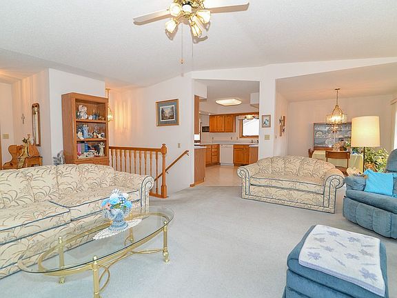 This move in ready ranch is located in a family-friendly neighborhood, on a quiet street, on a cul-de-sac. The main level has carpet and laminate floors, an office/study, formal dining room, and features a gas fireplace. Also on the main level are 3 bedrooms, 2 full baths, and laundry. The kitchen features laminate floors, laminate counters, and breakfast nook. Appliances stay with the home. The master bedroom is located on the main level and features carpet floors and walk-in closet. The attached master bath includes vinyl floors and Tub/Shower Combo. The finished lower level features a bedroom, full bath, office/study, recreation room, workshop, and storage area. Outside you'll find a treated wood deck overlooking the yard with mature trees. Lower level surrounding shelves and speaker are included with the sale of the home. Roof with transferable warranty-2 yrs. New carpet in one bedroom and entryway of the lower level. Call or email today for a private showing.