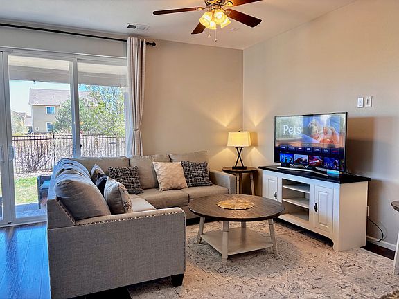Absolute gem located in Traditions, a newer neighborhood, that is within walking distance to the park, pool, play ground, skate park, walking paths and Vista Peak Preparatory School. Amenities included: EV Connection, central air, central heat, dishwasher, hardwood floors, pool, stainless steel appliance, updated kitchen, updated bathroom, fresh paint, washer/dryer, beautiful yard for summer lounging, gourmet kitchen, crawl space for storage , clubhouse, children's park, skate park, basketball court nearby, oversized sliding backyard door and spacious 2-car garage. Pool community with clubhouse. Pet friendly. Tenant responsible for all utilities (gas, electric, internet, water and sewer) Owner pays trash, HOA, taxes and insurance (not renters insurance)