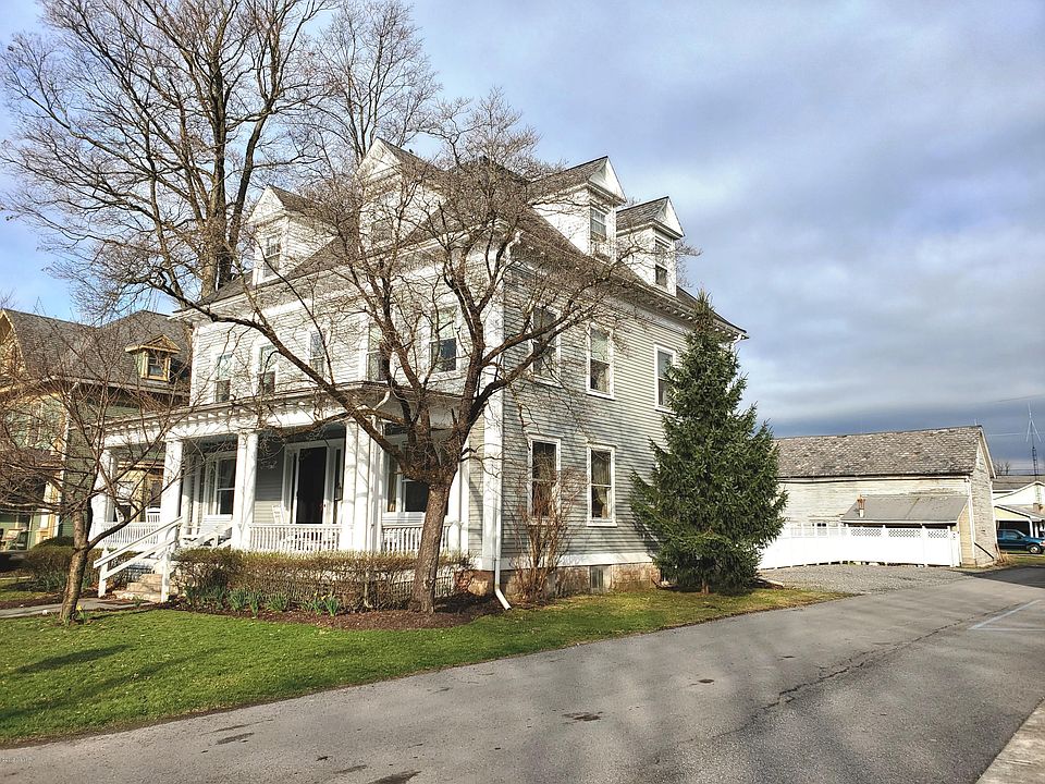 Fantastic B & B featuring old world charm with a touch of modern. Many original features, pocket doors, light fixtures, ice box and more. Wood floors through out, most all replacement windows, natural gas heat and two porches to relax on in the rockers. Privacy fence for the back yard, patio area and play house. Additional 2 story barn, car port and plenty of off street parking. This truly is a ''Must See!'' Whether for a large family home or to run your own B & B.