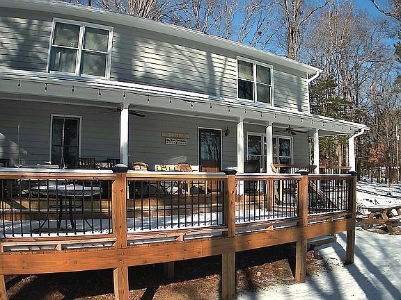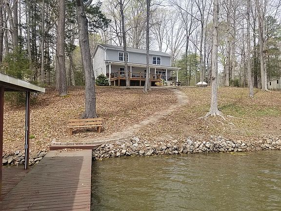 A great lake house starts with breath taking views not just from your boat dock but right from your living room and front porch! With this wonderfull home all you will have to do is grab that coffee (or your favorite beverage), open the front door and choose your favorite spot. It's time to truely relax, put your mind at ease and enjoy the sounds of nature and the beauty of the sparkling sunshine off the lake! This extremely well maintained home was built in 1994 and updated in 2012 with a second floor addition. The home features hardwoods througout the first floor, tiled baths, 3 bedrooms, two of which have private full baths, 3.5 total baths and a very versitile bonus room (currently used a multi bed sleeping area and playroom for the kids) that is almost half the upstairs. The home features a new front deck addition, new HVAC unit, a foam insulated attic, Ext Painted 2021, a large boat dock and new lift with new metal roof in 2022, 4 year old dock decking and a large storage building with power. So come, have a seat on the front porch swing and see what lake life is suppose to feel like! Owner is NC Real Estate agent 919.332.7777 Dan or dgabrielli@hotmail.com