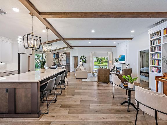 Welcome to Saratoga Lakes, a Hidden Treasure in Royal Palm Beach. This 3-Bedroom, 3-Bathroom Lakefront Home Has Been Meticulously Renovated to the Highest of Standards. 2024 Updates Include: Ceramic Wood-Look Tile Throughout (No Carpet), New Baseboards, New Hi Hat Lighting, New Ceiling Fans and Designer Light Fixtures, New Guest Bathroom Vanity, New Closet Doors in Bedrooms, New Custom Built-In Murphy Bed in Guest Bedroom, New Nest Thermostat, New Exposed Beams in Living Area, New Custom Coffee Bar With Cabinet Built-Ins and Designer Wall Tile, New Custom Built-In Bookshelves With Piano Encasement, New Custom Fireplace Surround, New Drapes and Drapery Rods, New Kitchen With White Shaker-Style Cabinetry, Quartz Countertops and Cafe Kitchen Appliances, Freshly Painted Interior & Exterior. Inside, You'll Find an Open Concept Living Area, Volume Ceilings and Plenty of Natural Light to Brighten Your Day. Each Bedroom Features a Private En-Suite Bathroom, Offering Flexibility for Families, Guests Or Multi-Generational Living. A True Standout Feature of This Spectacular Home is the Serene Lake Views Available from Nearly Every Room in the House. The Chef-Inspired Kitchen Offers High-end Appliances and a Spacious Island Large Enough to Accommodate Many Guests.
