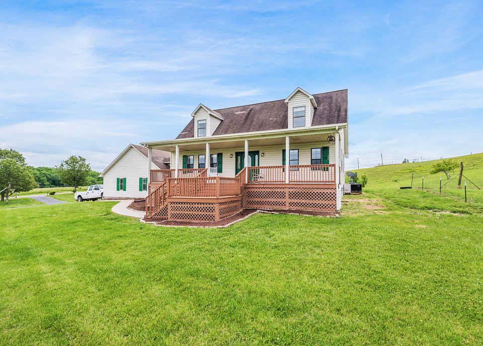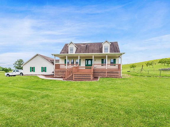 Welcome to your ''home sweet southern home''! A country dream, settled on 10.5 acres of gentle rolling farm land, with multiple outbuildings, and a renovated cape style farmhouse perched on the crest of the property with stunning mountain views from the covered front porch. Summer nights feature the setting sun running along the ridge of the distant mountains before finally setting in the ''saddle'' of where two mountain ranges converge. Master bedroom on the main level with walk-in closet, hardwood floors, updated kitchen, 2 bedrooms and full bath upstairs, 28 x 28 2-car garage, plus 2 barns and a storage shed! Make this Southern dream home yours by calling today!!