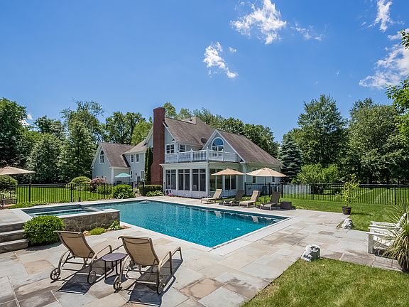 Enter Through Stone Pillars To Enjoy The Pastoral Views Of This Professionally Landscaped Property While Relaxing By The Saltwater Pool with 10 Person Spa And Waterfall. This Custom-Built Home Offers 5 Bedrooms, 4 1/2 Baths. Enjoy The Gleaming White Kitchen W/Granite Counters That Opens To The Family Room With Fieldstone Fireplace & 3 Season Porch overlooking The Pool, LR Has Gas Fireplace, Dining Room Is Perfect Size For Entertaining, Study Has Custom Cabinetry & Gas Fireplace, Master Bedroom Has Tray Ceiling, Walk-in Closets Closets, Access to Exercise Area, Master Bath Has Double Sinks & Steam Shower. Finished Lower Level Has Entertainment Areas For Family Fun. This Home Will Fufill Everyone's Needs & is Situated on Stunning 2.4 Acres With Quintessential Stone Walls. Enjoy A Staycation In This Exciting Home! Pictures Reflect Owner's Furnishings