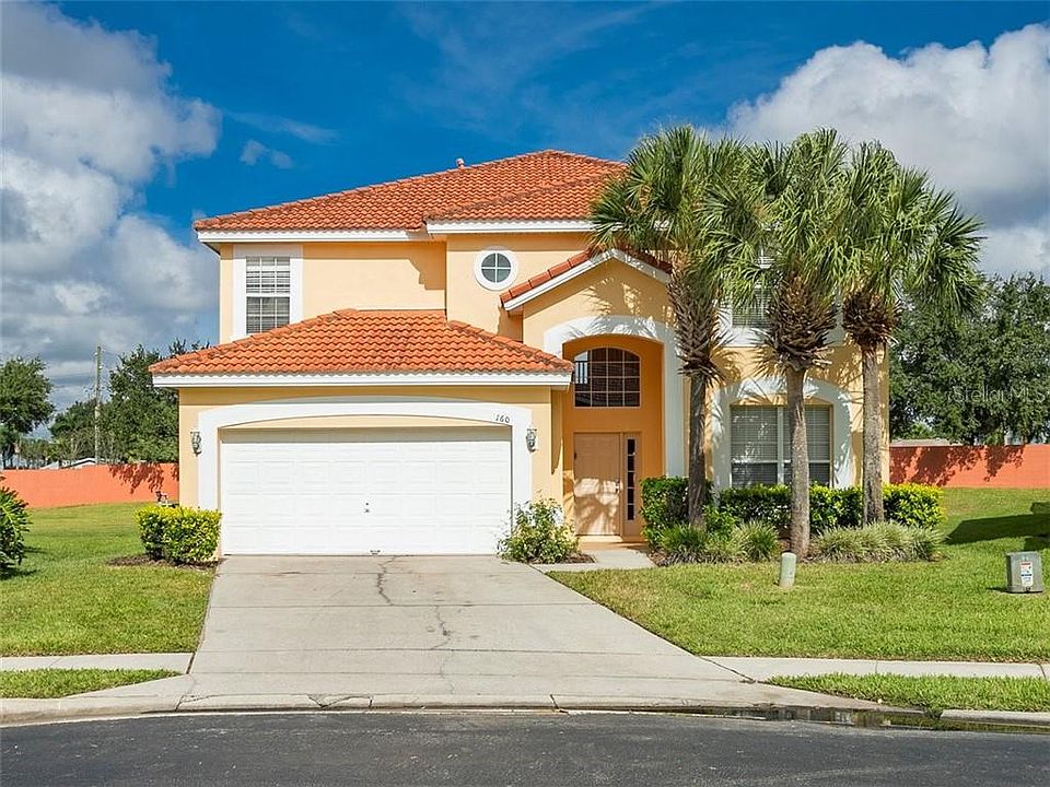 WELCOME This beautiful home sits perfectly in a SOLANA Gated Community. Close to shopping, Walt Disney World, Reunion, Champions Gate, and with easy access to major freeways makes this a desired area to live and enjoy the Central Florida Lifestyle. Set in a lovely cult d sac, this home offers more than ample space. It is fully furnished and designed for today's family life featuring 6 spacious bedrooms (master suite on first floor), with 5 and a half bathrooms. The home is contemporary with vaulted ceilings, inviting windows, kitchen with dinette and island, great views of patio, heated pool and hot tub. Freshly painted and thoroughly cleaned including professionally cleaned carpets and deck. The community itself offers a resort style club house with pool, gym, arcade and mini golf. GUARD GATE 24/7, CABLE, INTERNET, POOL and GROUND MAINTENANCE INCLUDED.