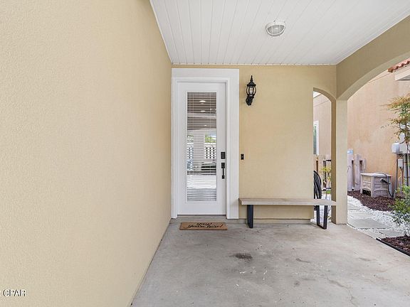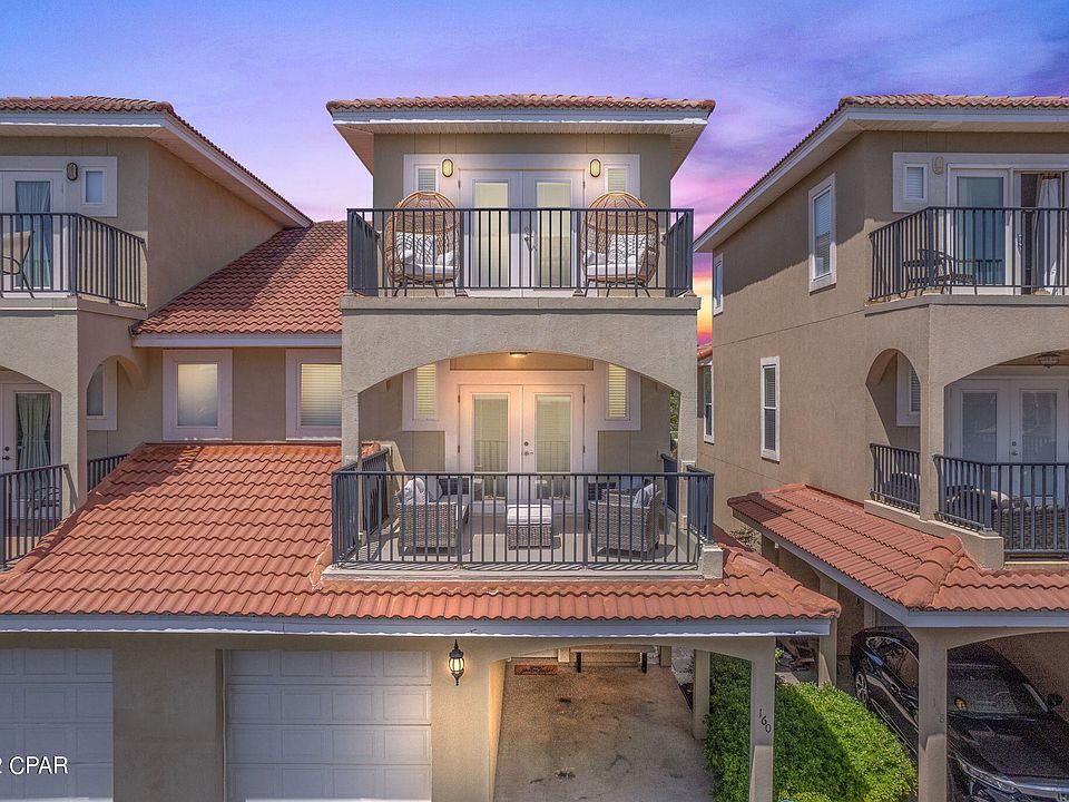 Low density and on the west end of PCB, townhome units like this rarely come to market for sale! This 4 bedroom, 3 and a half bathroom Mediterranean style home is walking distance to the World's Most Beautiful Beaches and provides Gulf views from the third floor! Completely turn-key and close to everything, this unit has very strong actual rental numbers as well as projections. Upgrades include stainless appliances, granite countertops, high end lighting and furnishings. HVAC systems new in 2019. One car garage, car port, and parking space provide ample parking for cars or a golf cart to get around. This home has been lovingly cared for and masterfully decorated and will make an excellent vacation home, primary home, or investment property! Call to schedule a showing today!