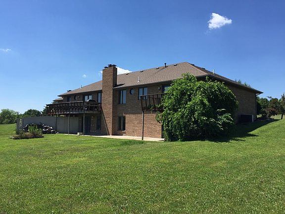 ALL BRICK WALKOUT BASEMENT ON 10.54 ACRES! Beautiful country setting just minutes out of town on blacktop. Acreage is partly open and partly wooded with a pond. Traditional floor plan with large kitchen with island and bar area. Good size bedrooms, master bath has walk-in shower, jetted tub, double vanities and walk-in closet. Basement is unfinished, finish it and you would gain a family room, bedroom and bath plus lots of storage! Beautiful brick fireplace in living room and basement. Come take a look at this home, you won't be disappointed.