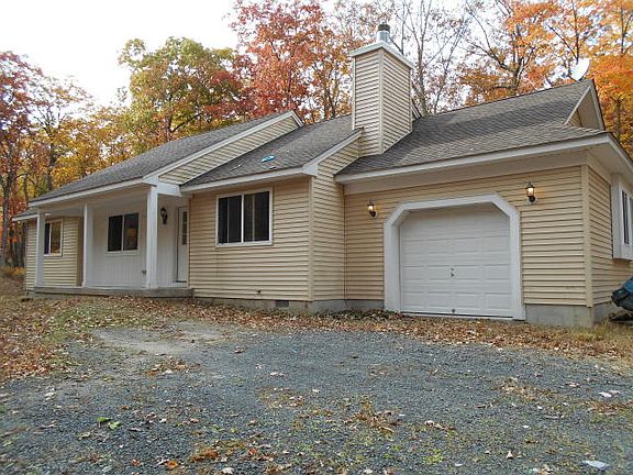 Updated ranch in amenity filled community. Set on a beautiful treed lot this Pocono Ranchland, 3bedroom, 2 bath home has a big master bedroom, with large walk in shower. Neutral paint inside and out. New carpets! Updated kitchen! Covered front porch. Enjoy this peaceful area. 2 pools-one heated,clubhouse with lots to do, snack bar too. Horseback riding, skiing, sledding tennis, bocceball,basketball and more. Great for commuters! Stay warm by the stone living room fireplace! Call to see this home today.
