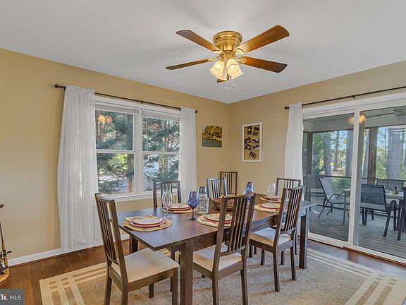 Well kept Rivah rancher w/oversize separate garage is ready for its new owner! Living is easy in this 1-level home with open Kitchen/dining/family room overlooking Rock Hole Creek. Spacious kitchen w/pantry adjoins a good sized dining area which flows to family room. Three roomy bedrooms are down a side hall. Hall Bath & laundry closet make cleaning up easy after enjoying the water! Beautiful dark wood floors thru out. Primary bedroom is ensuite w large shower & dual sinks. The hall bath w/ tub serves the 2 additional bedrooms. Outside, enjoy the rear screened porch w/water breezes! A small boat ramp adjacent to dock makes pulling your skiff easy. The dock offers a kayak platform & fish cleaning station; water & power are at the dock. Next to the house, enjoy the oversized metal garage! Store boat(s), skis, cars, toys, &/or lawn equipment; make a fitness room, or add a workshop - whatever you can imagine! Mature grape arbors grace the side lot; apple trees produce fruit in the front circle garden. Mature evergreens provide privacy from the street. The house can convey with select furniture at buyer's option. Located close to the Jetties inlet to the Bay; Smith Point Marina; Sunnybank Ferry; and Main Street Reedville with its wonderful restaurants and Fisherman's Museum. Bonus - a 16' Bayliner with 60 Merc outboard w/a full price contract!
