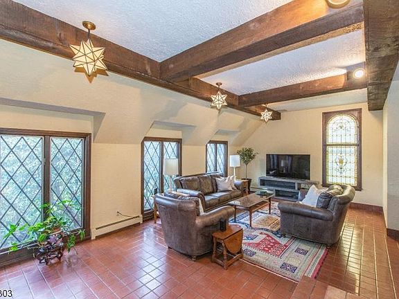 Custom Tudor with all the charm! Large living room featuring wood burning fireplace, french doors, custom cabinetry and opens to formal dining room. Oversized great room features high beamed ceiling with large bar area for entertaining. First level bedroom and full bath can serve as in-law suite when paired with kitchenette and separate entrance. This level is completed with entry vestibule, main kitchen and powder room. Upstairs has primary bedroom with modern full bath, walk in closet and additional closets. Two more bedrooms, main bath and walk in storage room complete this level. Unfinished basement with laundry, storage room and outside entrance. Two car detached garage. Central air. Newer furnace. Top rated schools. Close to downtown for shopping and dining. Easy access to NYC, highways and airport. 2964 sq ft per tax records.
