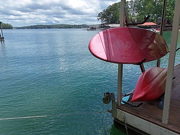 Stunning Lake Blue Ridge Frontage with Breathtaking Long-Range Mountain Views! Welcome to your dream retreat on the shores of Lake Blue Ridge! This exceptional lakefront cabin offers year-round deep water access and sweeping long-range mountain views—all within a peaceful, gated community. Imagine watching the 4th of July fireworks from your deck or cruising across the lake to the Boat Dock Bar & Grill for dinner and drinks. This is lakeside living at its finest. Inside, the 3-bedroom, 3-bath cabin charms with its warm, all-wood interior, soaring windows, gazebo with hot tub and open-concept layout that brings the outdoors in. The spacious kitchen boasts custom cabinetry, stainless steel appliances, and a generous dining area that seats up to 12—perfect for hosting family and friends. Relax in the cozy living room by the stacked-stone wood-burning fireplace, or retreat to the upstairs master suite, complete with a private screened-in porch offering panoramic views of the lake and mountains—ideal for enjoying your morning coffee or evening sunsets. Additional features include Recreation room with extra sleeping space for guests, Central vacuum system & alarm system, Paved driveway leading to a private 2-story boat dock with lift and jet ski ports, Expansive lot with fire pit area tucked among the trees, Ample extra parking for guests. This rare property offers not just a home—but a lifestyle. Whether you're gathering for cozy winter bonfires, enjoying lazy summer days on the lake (boat available for separate purchase), or simply soaking in the year-round views, this is a retreat you'll never want to leave. Don't miss your chance to own a piece of Lake Blue Ridge paradise. Schedule your private showing today!
