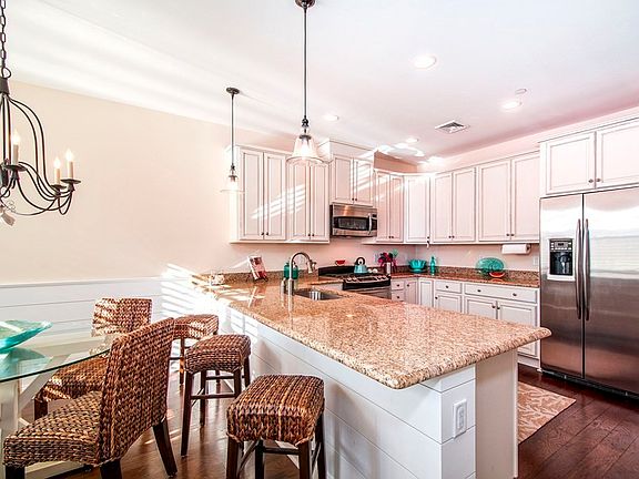- Kit Dscrp: Countertops - Stone/Granite/Solid, Breakfast Bar / Nook, Stainless Steel Appliances, Kitchen Island, Open Floor Plan, Flooring - Wood, Main Level, Lighting - Overhead, Beadboard